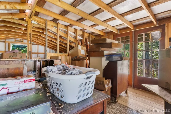 for enjoying morning cup of coffee or entertaining in the evening. Over sized two story car pole barn garage. Garage has ample storage with possibilities of a guest suite. Furniture in hallway and living room will remain. Home is being sold “AS IS”, requires a little TLC.