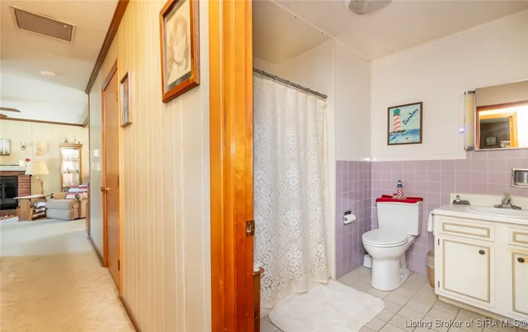 a spacious living room highlighting a cozy fireplace, perfect for relaxing evenings. The kitchen
